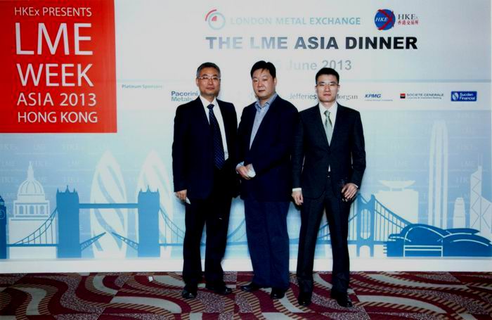 6月26日,受南非標(biāo)準(zhǔn)銀行邀請(qǐng),公司總經(jīng)理駱偉棟先生出席LME亞洲會(huì)議。 香港交易所首次聯(lián)同LME,以「開拓新天」為主題的LME 亞洲年會(huì)2013 ,在香港舉辦首屆大型的金屬業(yè)界交流活動(dòng)。來(lái)自全球各地的金屬市場(chǎng)翹楚云集香港,共同探索業(yè)界在亞洲,特別是中國(guó)內(nèi)地市場(chǎng)的最新發(fā)展和經(jīng)濟(jì)前景。會(huì)議期間駱總和必和必拓、日礦、智利國(guó)家銅業(yè)、德銀等國(guó)際一流礦業(yè)公司和商業(yè)銀行就共同關(guān)心的國(guó)內(nèi)外市場(chǎng)、銅消費(fèi)需求、銅產(chǎn)業(yè)未來(lái)發(fā)展趨勢(shì)進(jìn)行了充分的交流。