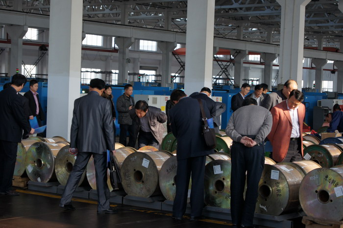 11月10日,安徽省電線電纜商會參觀團(tuán)來到江潤銅業(yè)。在公司營銷部經(jīng)理陪同下,商會理事們參觀了銅連鑄連軋車間、復(fù)合銅線車間、銅絞線車間,深入了解到了高品質(zhì)的銅加工工藝。此次安徽省電線電纜商會赴電纜城考察,是為發(fā)展本地線纜事業(yè)引進(jìn)先進(jìn)技術(shù)。